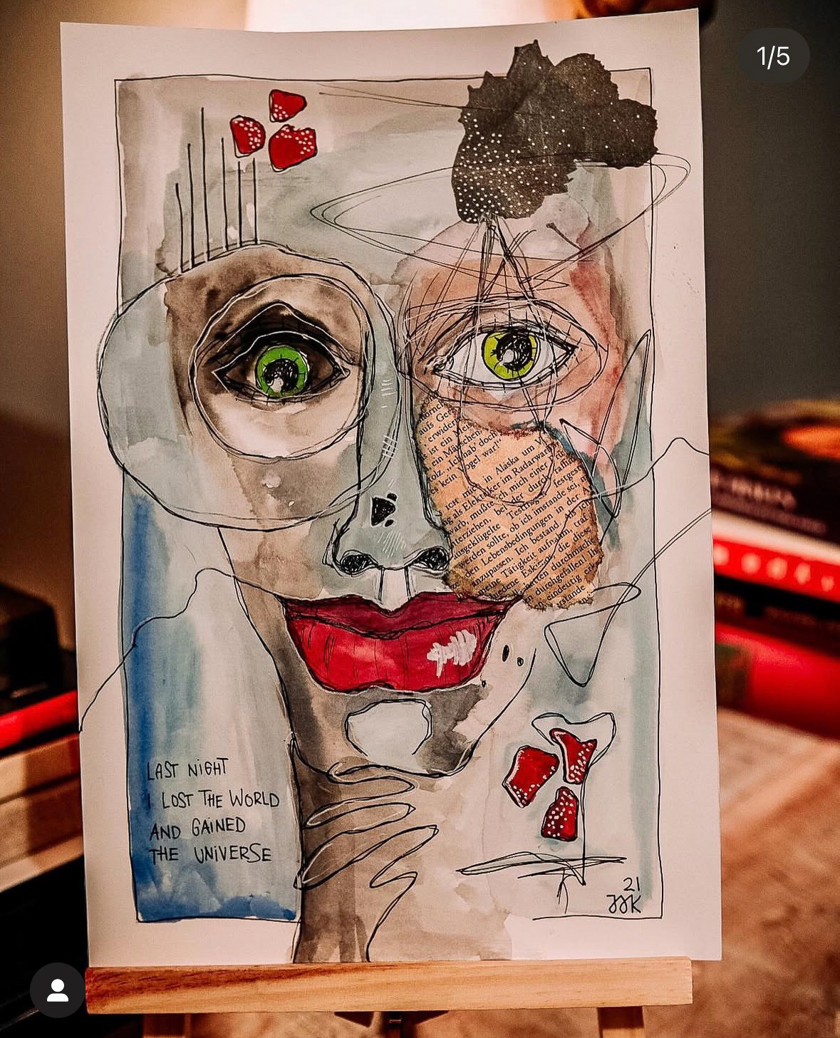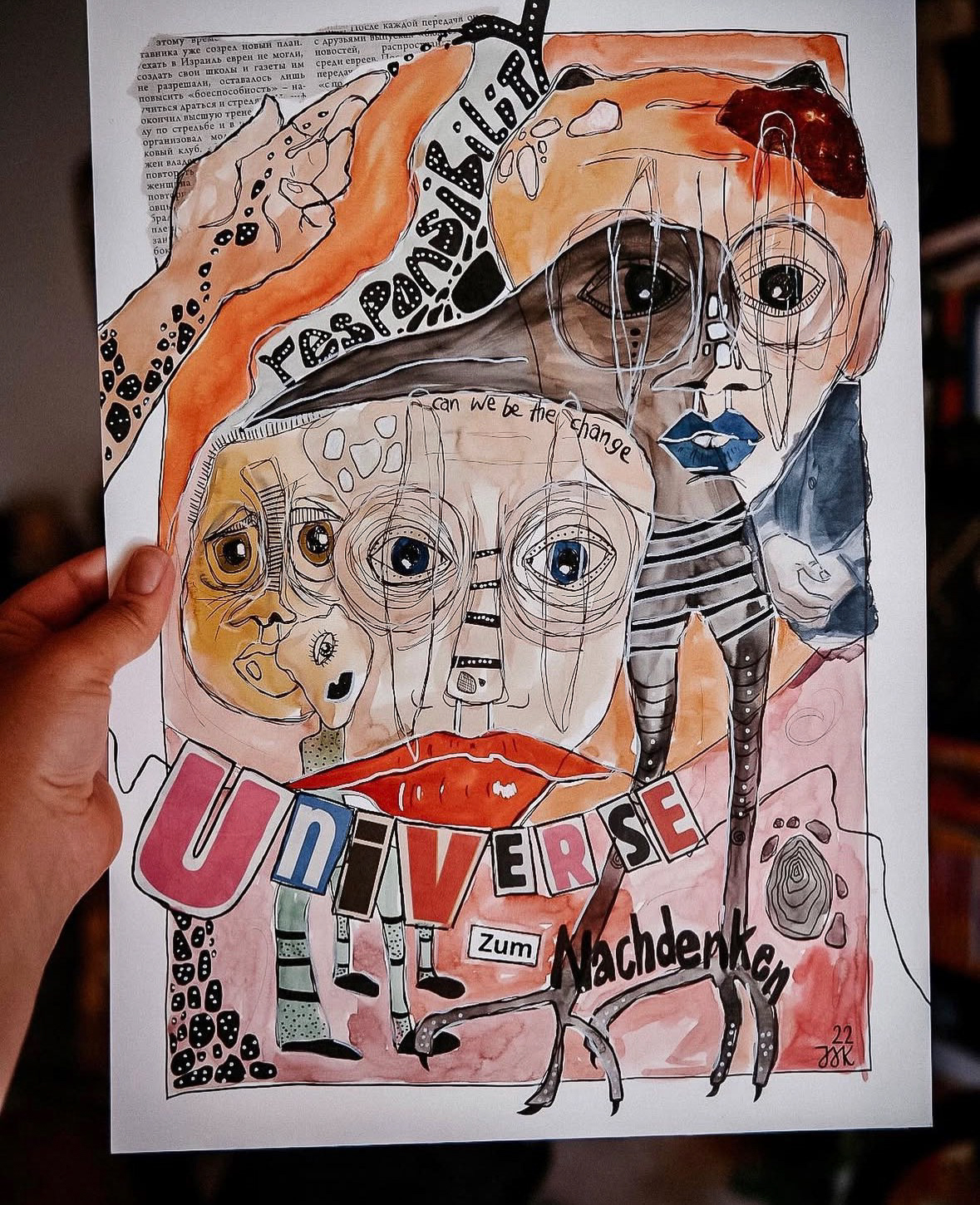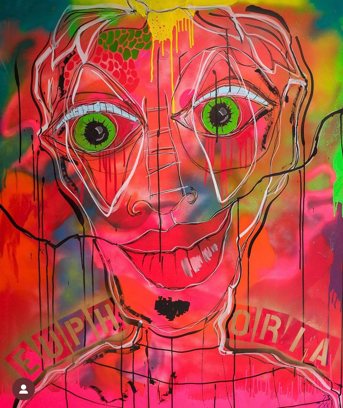 Meine Werke bewegen sich zwischen Selbsterkenntnis und Ekstase โ ein Spiel zwischen Innenwelt und รคuรerer Explosion. Gesichter werden zu Landkarten des Bewusstseins, verzerrt, offen, leuchtend. Worte wie โErkenne dich selbstโ und โEuphoriaโ geben ihnen Stimme und Richtung.