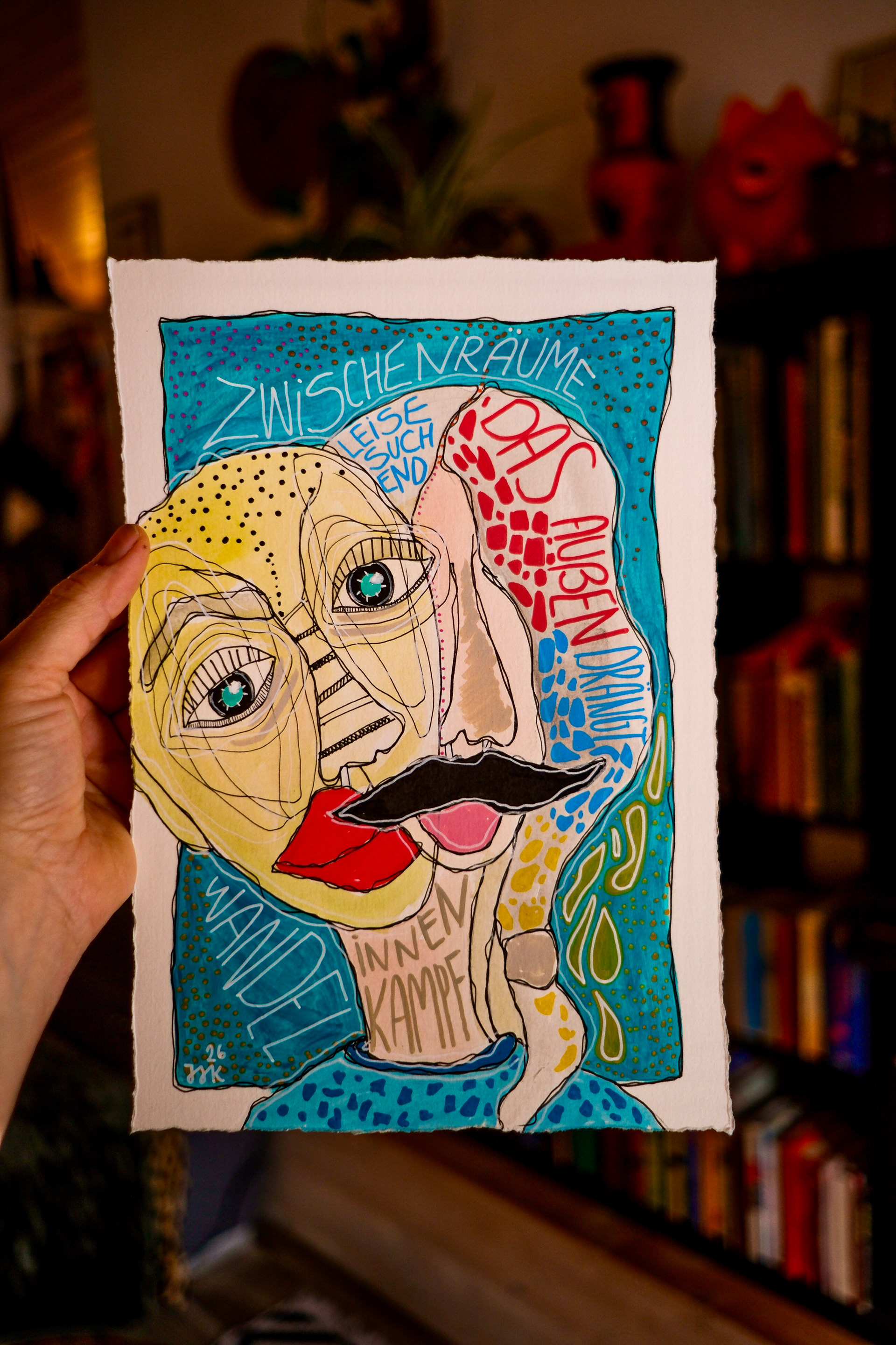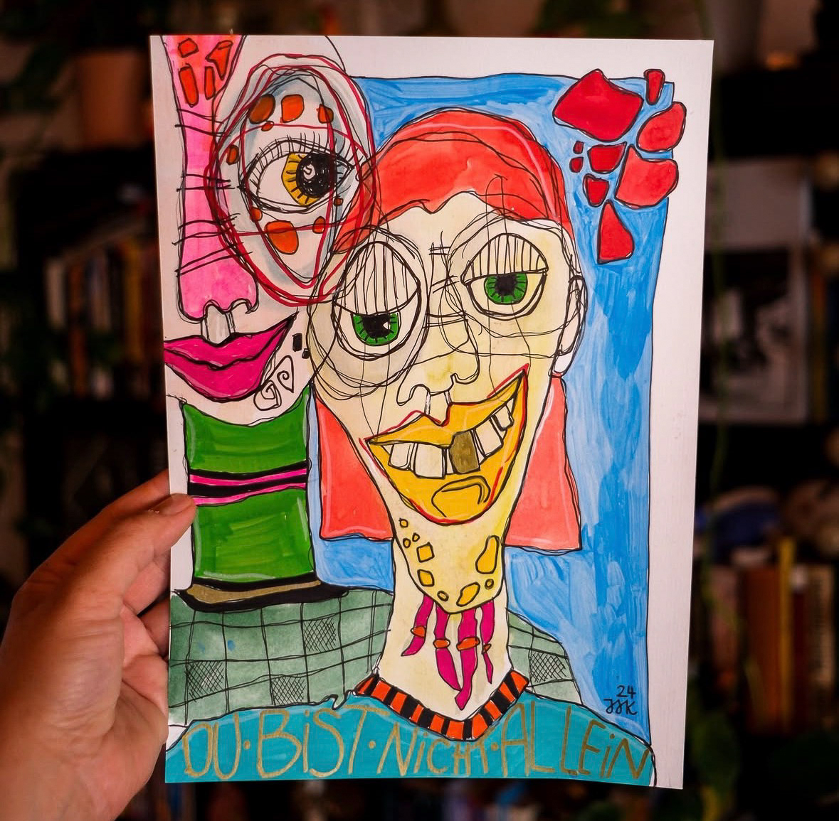Leuchtende Farben, flieรende Linien und energische Kontraste verwandeln Emotion in sichtbare Energie. Zwischen Street Art, Expressionismus und Psychogramm entsteht eine Bildwelt, in der Identitรคt nicht festgelegt, sondern stรคndig im Wandel begriffen ist โ fragend, fรผhlend, lebendig.